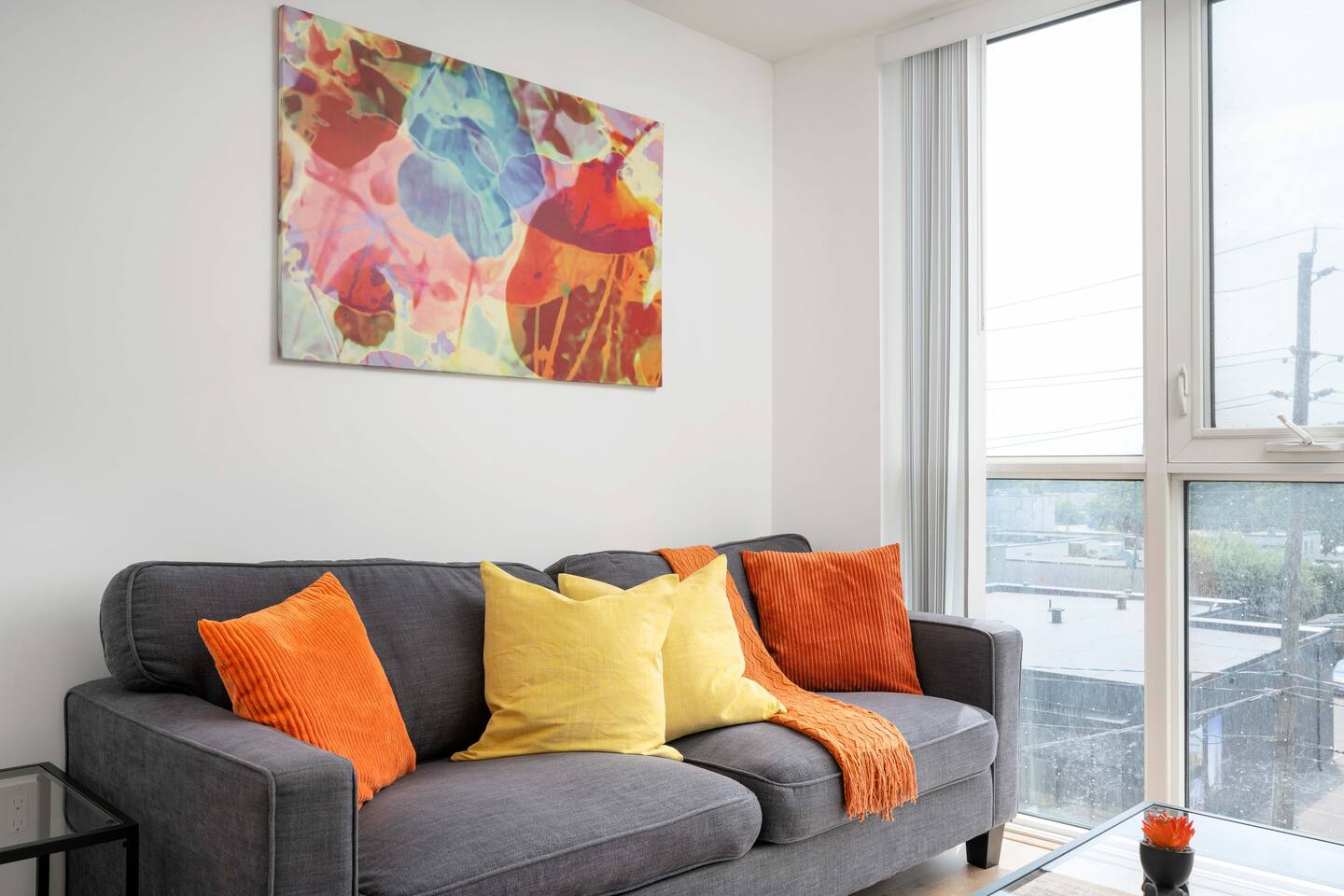 Enjoy a cozy and practical stay in our two-bedroom apartment featuring queen beds, a full kitchen, bathroom, in-unit laundry, A/C, Wi-Fi, and a private balcony. Perfect for work or rest, with easy access to transit, dining, shopping, and Stock Yards Village.