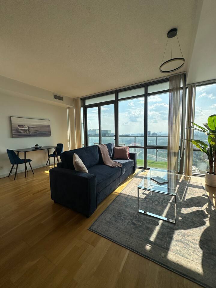 Located in the Bay Street Corridor, one of Toronto's most central locations, this one bedroom suite is tastefully decorated and equipped with all the living essentials including kitchen appliances. It's wide balcony offers skyline views of the city.