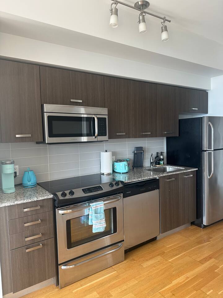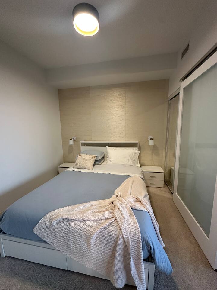Cozy 1-Bedroom Suite | Queen Bed + Sofa Bed Ideal for up to 4 guests, this inviting suite offers everything you need for a comfortable stay: 1 Queen-size bed 1 Sofa bed – sleeps 2 additional guests Fully equipped kitchen – featuring all the necessary appliances (excluding blender/mixer) Full bathroom – fresh towels and toiletries included Private in-suite balcony – perfect for some fresh air and relaxation Please note: No parking available on-site Paid parking options nearby – visit Parkopedia for detailed options and rates