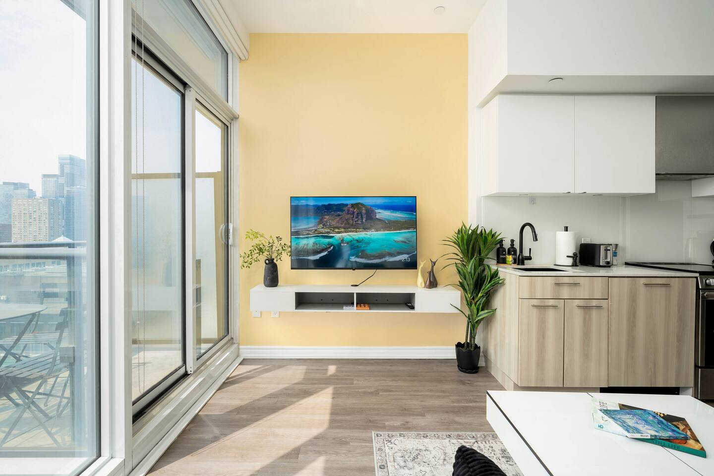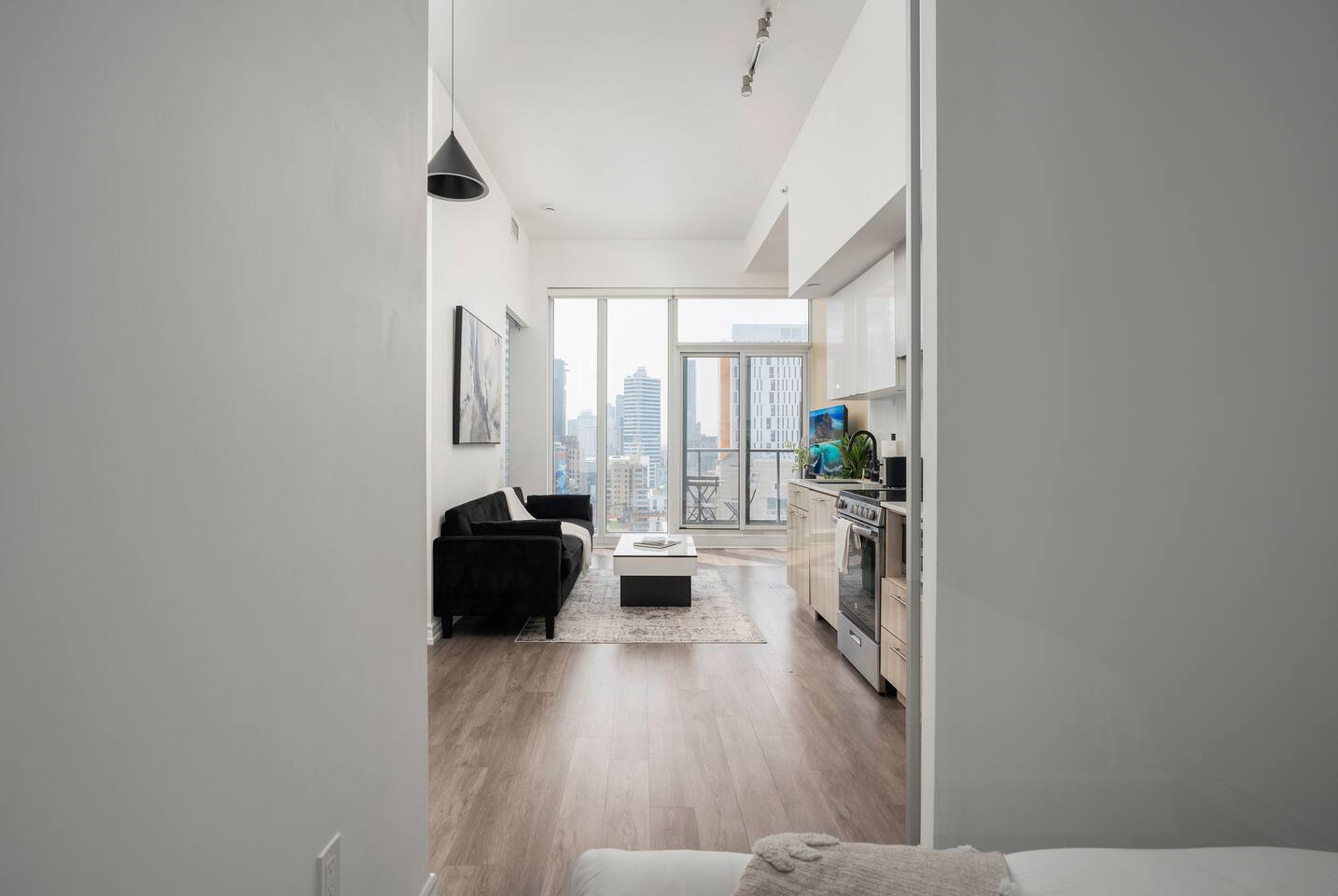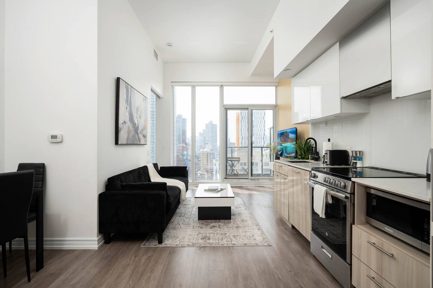 Modern 2-bedroom condo in downtown Toronto! Walk to Dundas Square, Eaton Centre, and tons of restaurants. Easy access to transit. Ideal for work trips or city getaways!