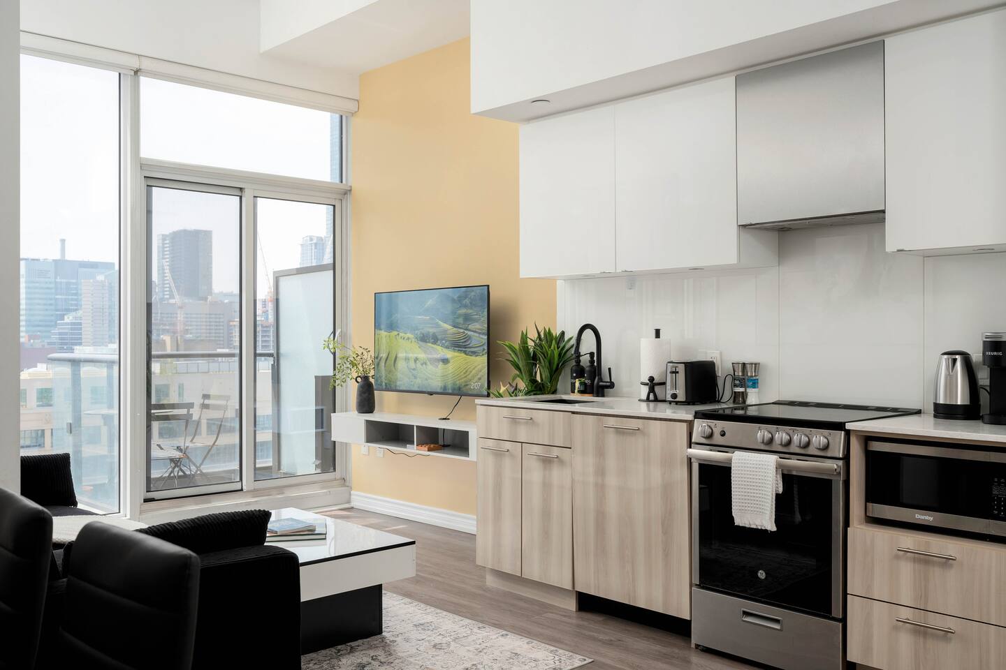 Located in Toronto’s Garden District, close to everything: Eaton Centre, Yonge-Dundas Square, cafés, shops, and Ryerson University. Enjoy green spaces like Allan Gardens, or explore nearby neighborhoods like the Distillery District and St. Lawrence Market.