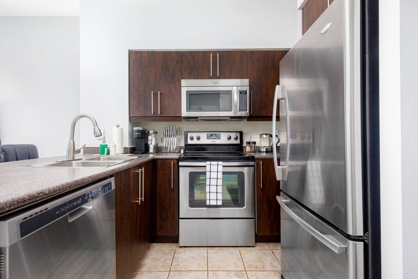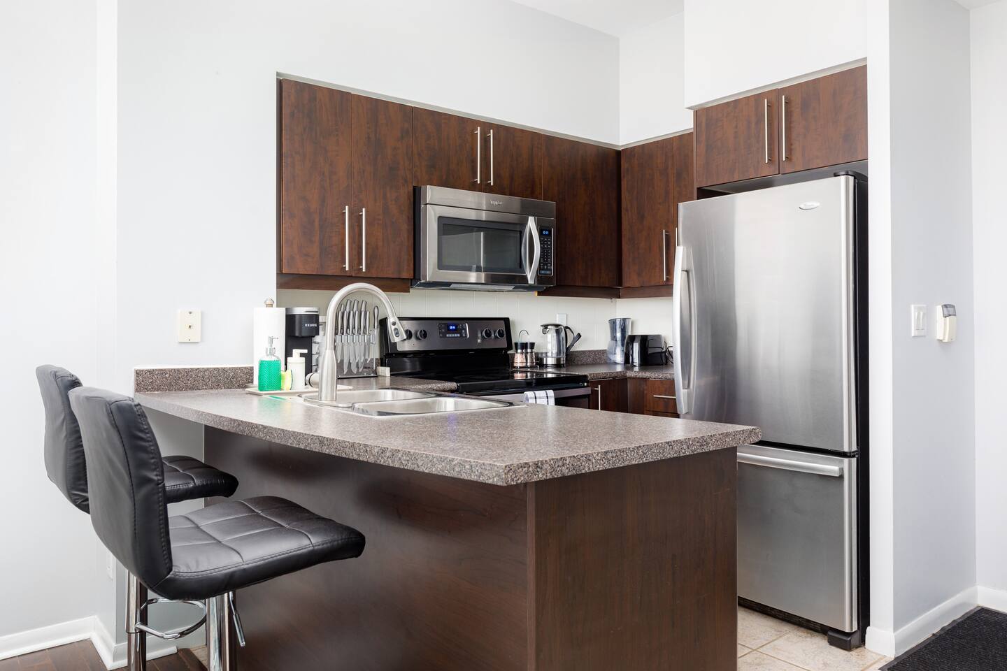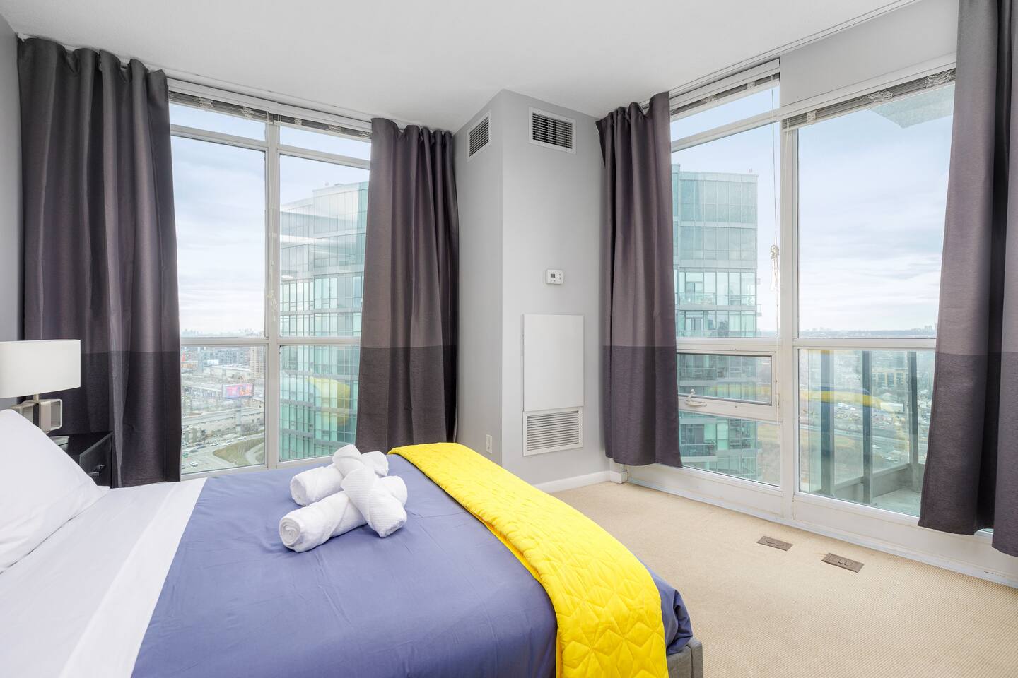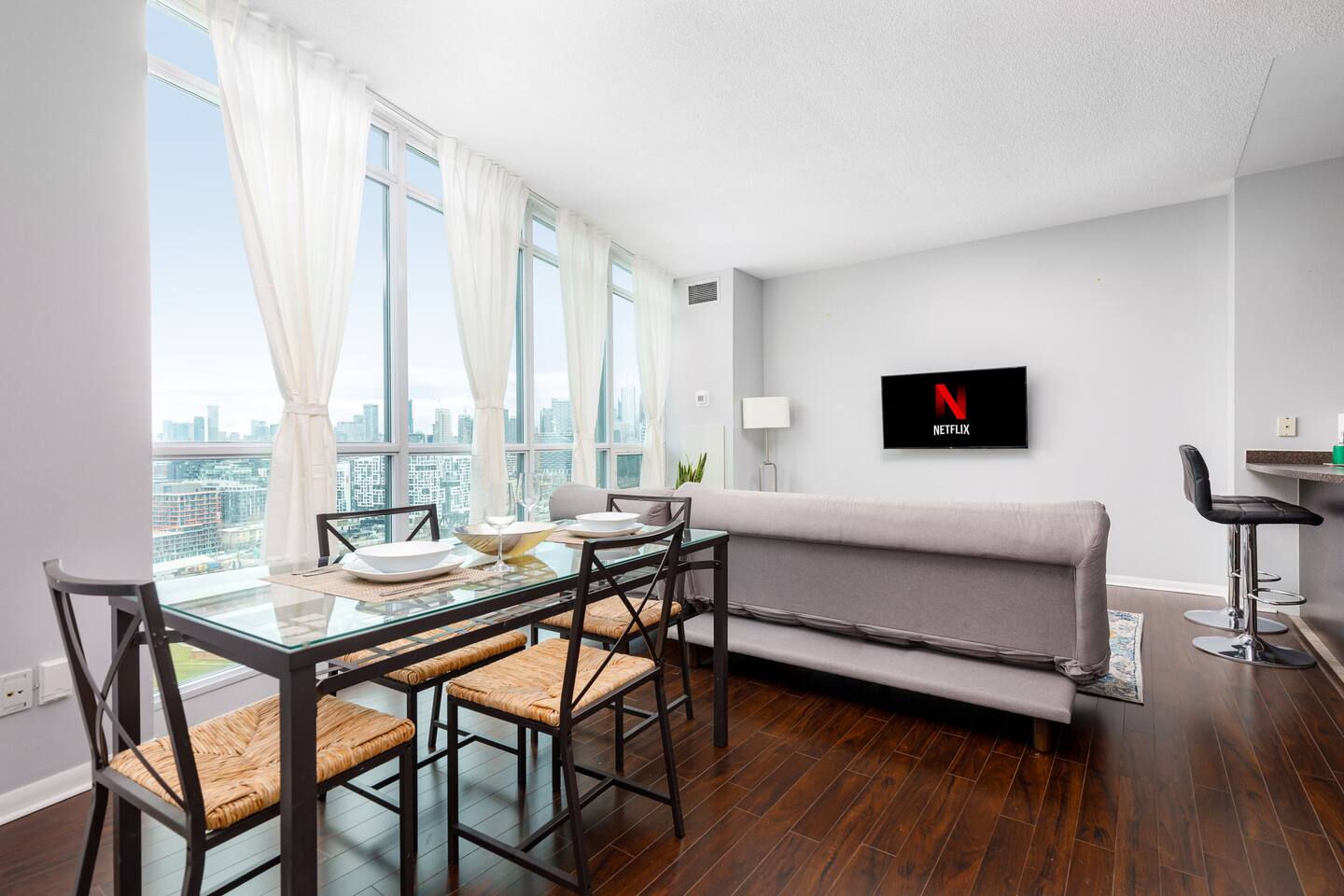 This stylish one-bedroom apartment in the Fort York area of downtown Toronto is steps away from major attractions like the Metro Toronto Convention Centre, Rogers Centre, and CN Tower. Enjoy stunning city skyline views while having all the essentials for a comfortable stay.