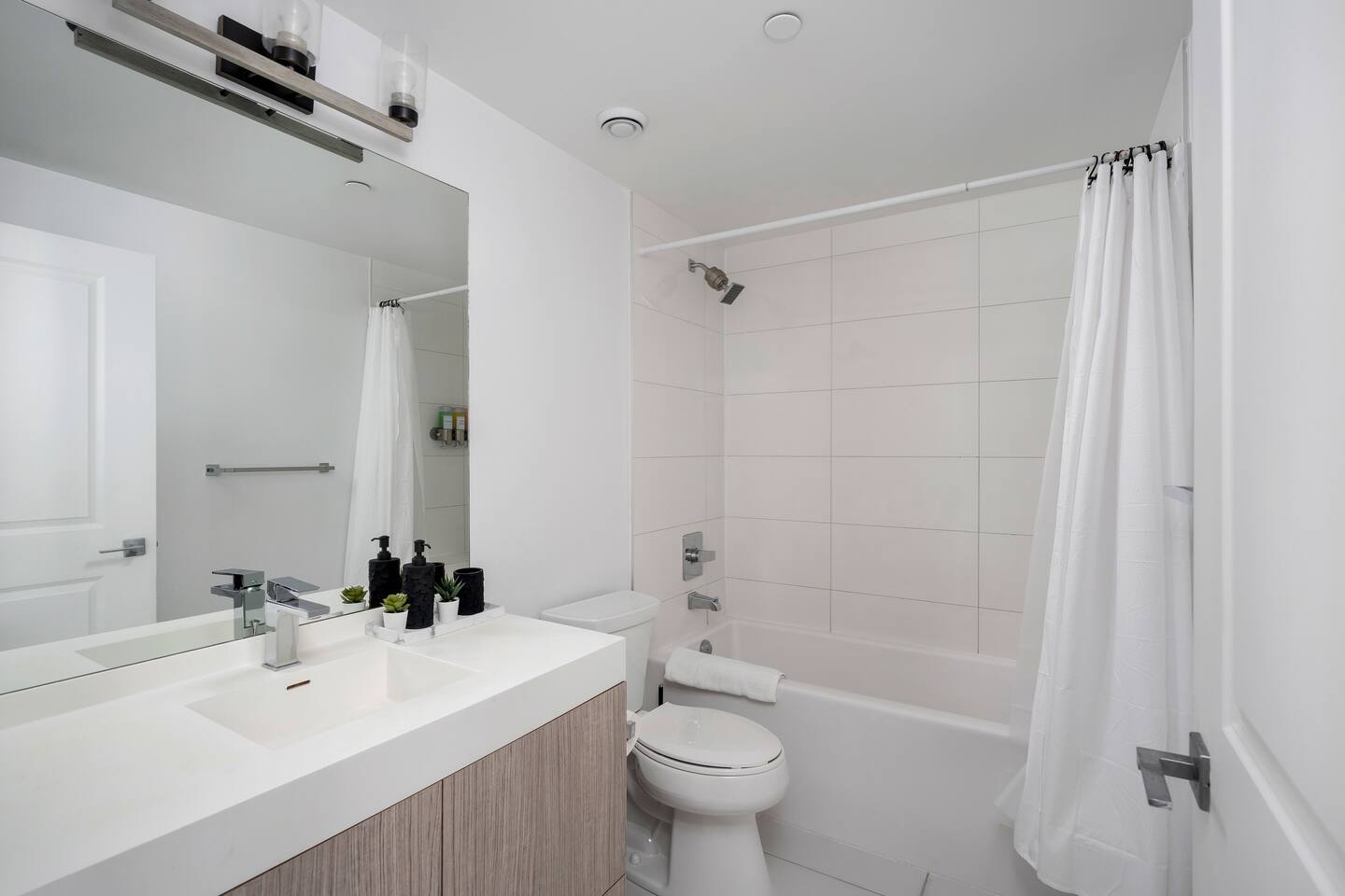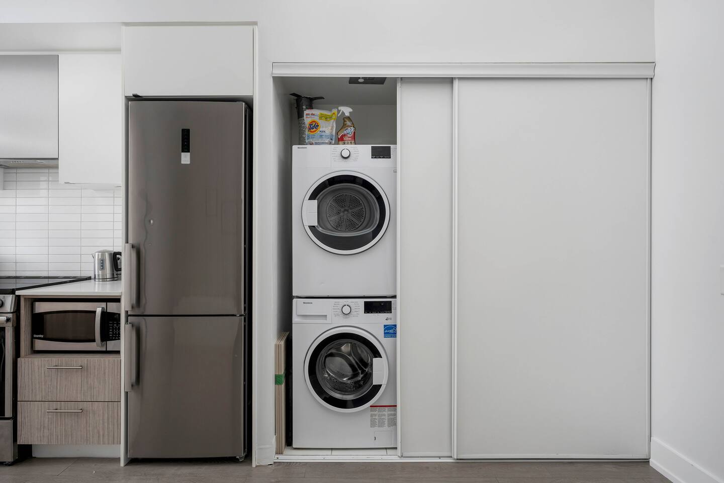 My Property features: One bedroom with a cozy queen bed Den with a single bed, ideal for an extra guest Living room with a comfortable 3-seat sofa Smart TV – log in with your own accounts to watch your favorite channels Fully equipped kitchen with essential appliances and cookware In-unit laundry for your convenience Private balcony to enjoy some fresh air Parking Information: No on-site parking included Paid parking may be available at P1 level, accessible via the alley on the left side of the main entrance (subject to rates and availability) You may also use Parkopedia (website or app) to find nearby parking options.