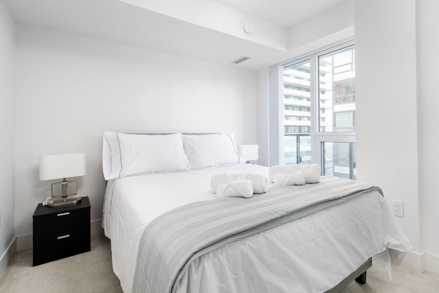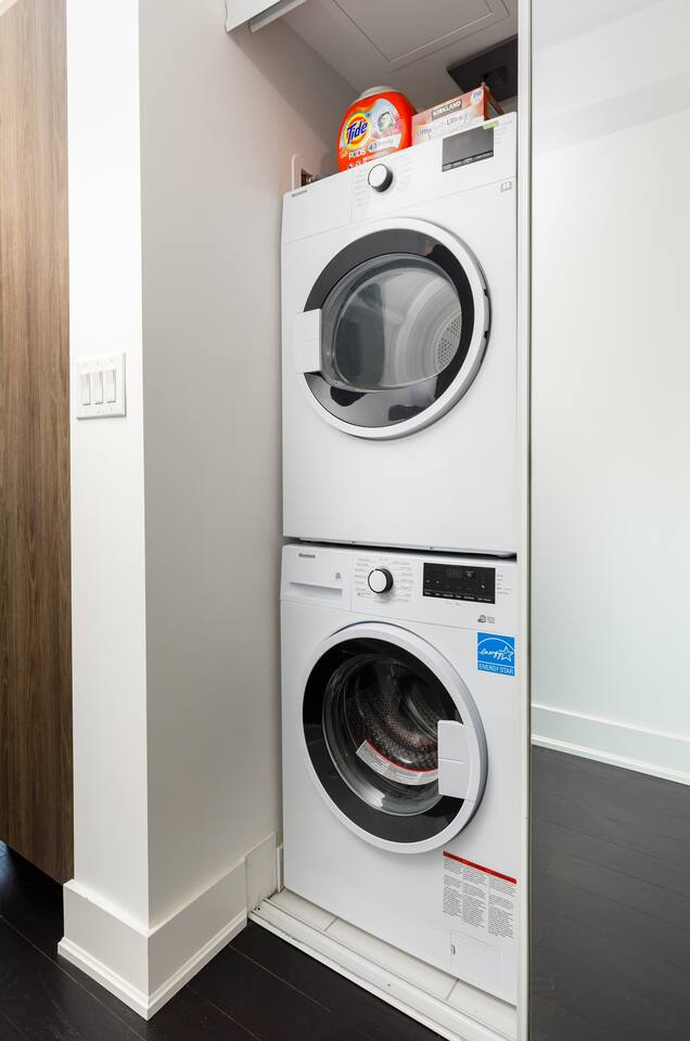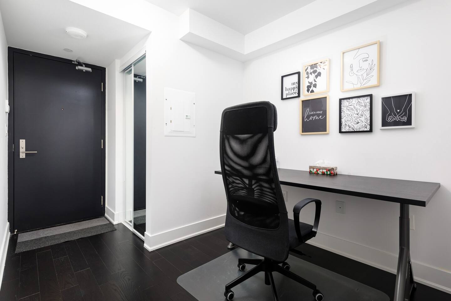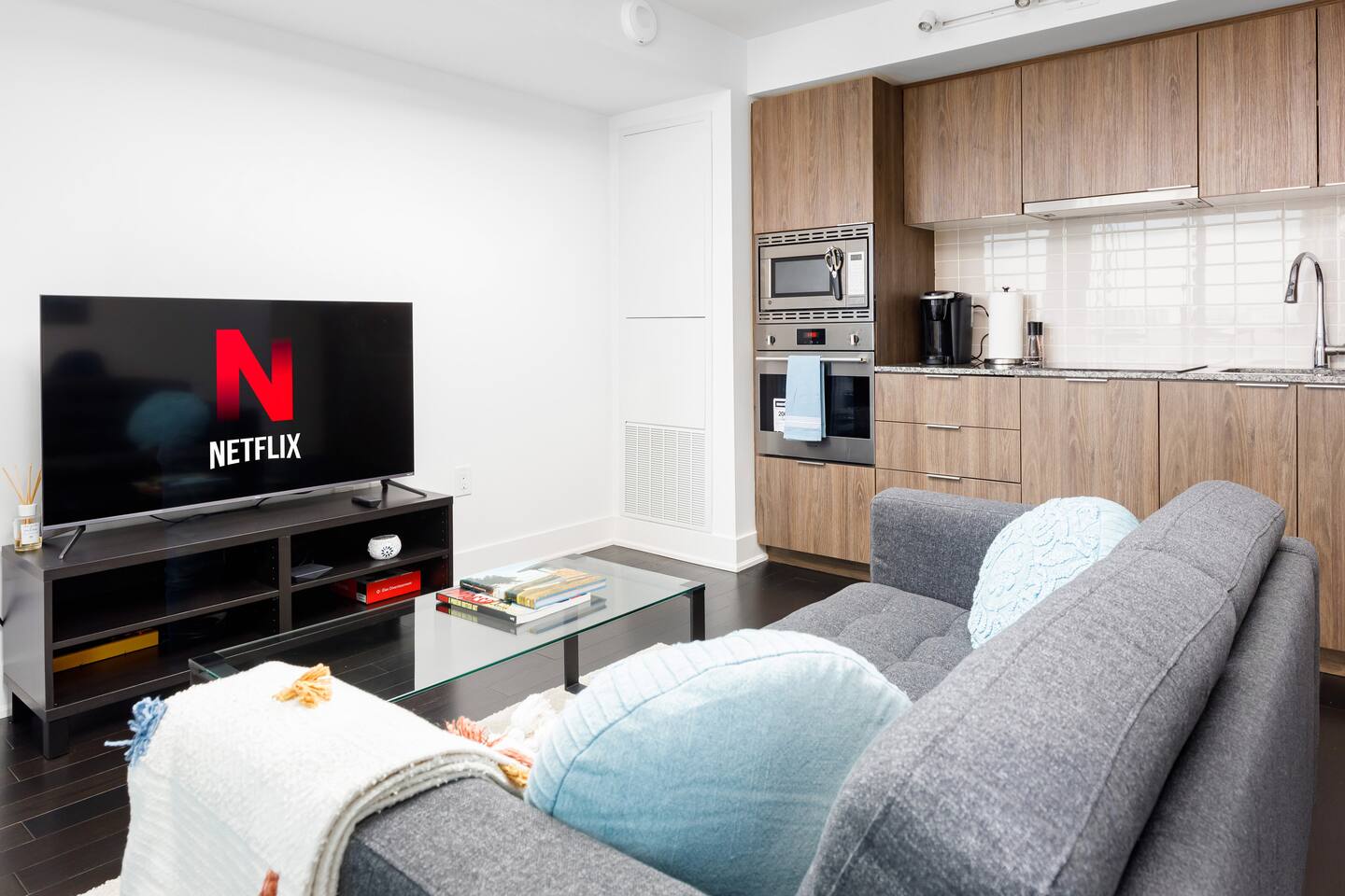 Highlights of the Space: Modern one-bedroom condo with a comfortable queen-size bed Fully equipped kitchen stocked with all essential cookware and basics In-suite laundry for added convenience during longer stays Dedicated workspace with an ergonomic chair, ideal for remote work or study Smart TV available — guests can stream their favorite shows by logging in with their own personal accounts Parking Information: Parking is not included Nearby parking options are available; rates and availability can be checked via the Parkopedia website.