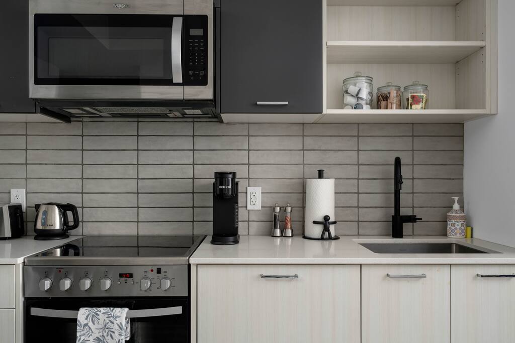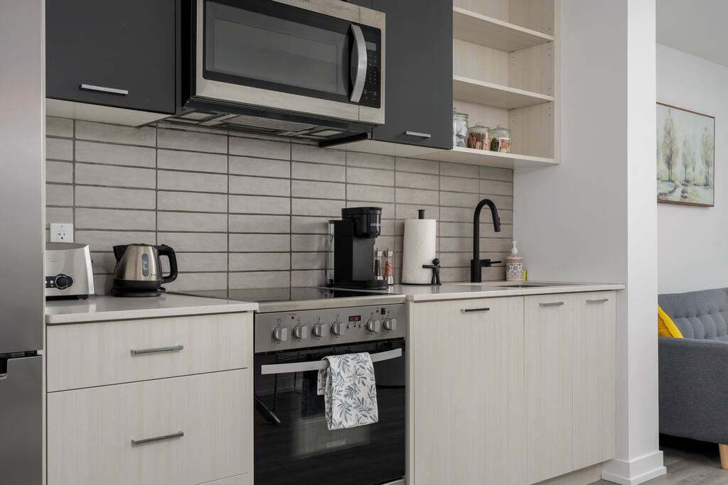 Our apartment is designed to feel like home. It includes two private bedrooms with queen beds, a sofa bed in the living area, a fully equipped kitchen with everything you need to cook, a modern full bathroom, in-suite laundry, heating, air conditioning, fast Wi-Fi, and a small private balcony. Whether you’re visiting for work or leisure, you’ll be staying in a peaceful space with easy access to transit, shops, restaurants, and Stock Yards Village.